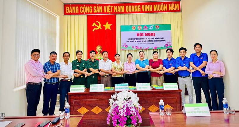 🍀 Chiều 23/7/2025, tại Phòng Giao dịch NHCSXH Phú Riềng đã tổ chức Hội nghị ký kết Hợp đồng ủy thác với 4 tổ chức chính trị - xã hội (gồm: Hội Nông dân, Hội Phụ nữ, Hội Cựu chiến Binh, Đoàn Thanh niên) của 3 xã Bình Tân, Phú Riềng và Long Hà về việc thực hiện ủy thác cho vay đối với hộ nghèo và các đối tượng chính sách khác. NHCSXH Phú Riềng kí kết hợp đồng ủy thác với 4 tổ chức chính trị xã Bình Tân. 🍀 Tại hội nghị, Phòng giao dịch Ngân hàng Chính sách xã hội Phú Riềng và 4 tổ chức chính trị - xã hội của 3 xã Bình Tân, Phú Riềng và Long Hà cùng thống nhất ký kết văn bản liên tịch về tổ chức, chỉ đạo các đơn vị trực thuộc thực hiện hoạt động ủy thác cho vay đối với hộ nghèo và các đối tượng chính sách khác. Theo đó, các bên tập trung thực hiện các nội dung ủy thác về công tác tuyên truyền, vận động; kiểm tra, giám sát hoạt động ủy thác; đào tạo, tập huấn và các hoạt động phối hợp cùng Ngân hàng Chính sách xã hội trong xây dựng kế hoạch tín dụng hằng năm, giám sát cũng như thực hiện đồng bộ các giải pháp nâng cao chất lượng hoạt động tín dụng chính sách, điểm giao dịch, tổ tiết kiệm và vay vốn... Đồng thời, văn bản quy định cụ thể trách nhiệm các tổ chức chính trị - xã hội xã, Phòng giao dịch Ngân hàng Chính sách xã hội Phú Riềng và trách nhiệm chung các bên trong triển khai thực hiện hoạt động tín dụng chính sách xã hội, phục vụ tốt hơn nữa nhu cầu vay vốn của người dân. 🍀 Việc ký kết hợp đồng ủy thác lần này nhằm thống nhất các nội dung phối hợp giai đoạn tiếp theo, để hoạt động tín dụng chính sách tiếp tục được triển khai đồng bộ, hiệu quả, ổn định sau sáp nhập, đáp ứng kịp thời nhu cầu vay vốn của hộ nghèo và các đối tượng chính sách khác, góp phần đảm bảo an sinh xã hội của địa phương. Nguồn NHCSXH Phú Riềng